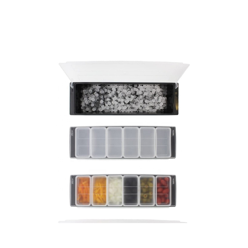 Keep your bar or kitchen neat and efficient with the 6-in-1 Condiment Dispenser Tray. Designed to hold six different condiments, garnishes, or ingredients, this tray streamlines drink and dish preparation, making it easier for bartenders, chefs, and home enthusiasts to work quickly and neatly.