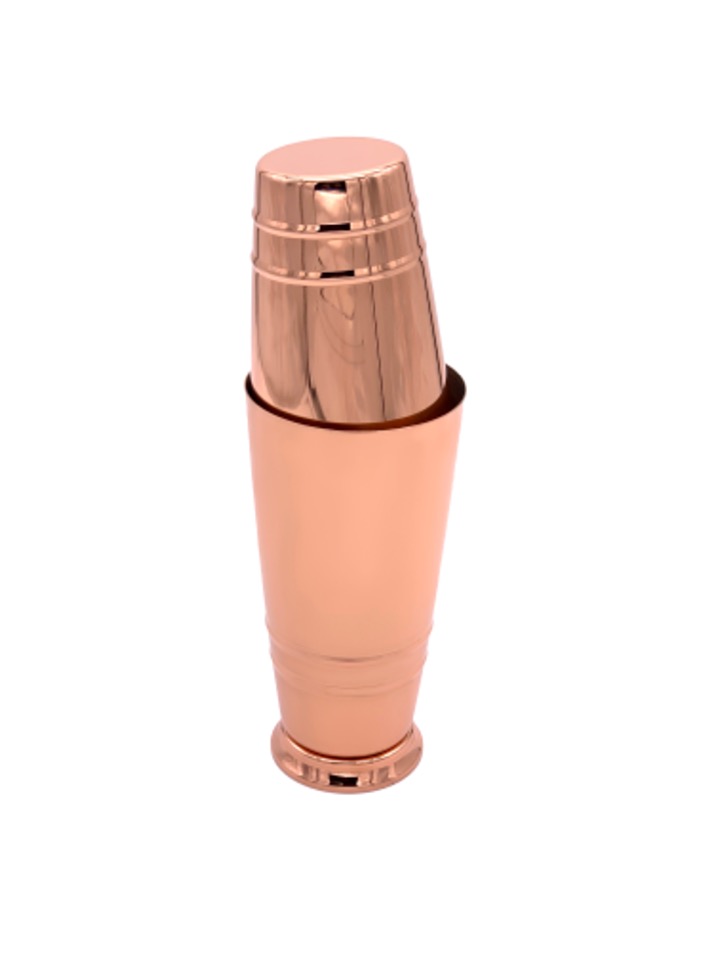 The warm copper electroplated finish adds timeless charm, making it a stylish upgrade for any barware collection. This set includes two tins (550ml & 750ml) that fit together seamlessly for mixing everything from classic cocktails to modern creations.