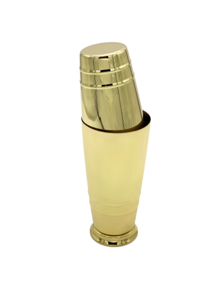 ✨ The luxurious gold electroplated finish adds sophistication, making it a striking highlight in any barware collection. This set includes two tins (550ml & 750ml) that fit together seamlessly for mixing everything from classic cocktails to modern creations.