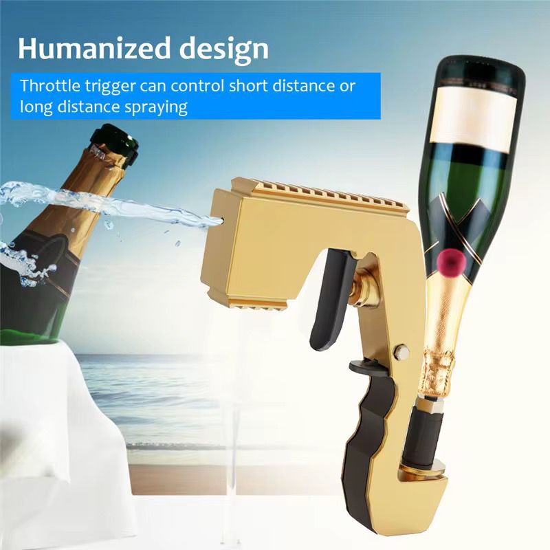 Crafted for both durability and style, it also doubles as a bottle holder for comfortable handling during service. Ideal for DJs, bartenders, and event hosts, the Gold Champagne Spray Gun creates a showpiece moment that guests will remember.