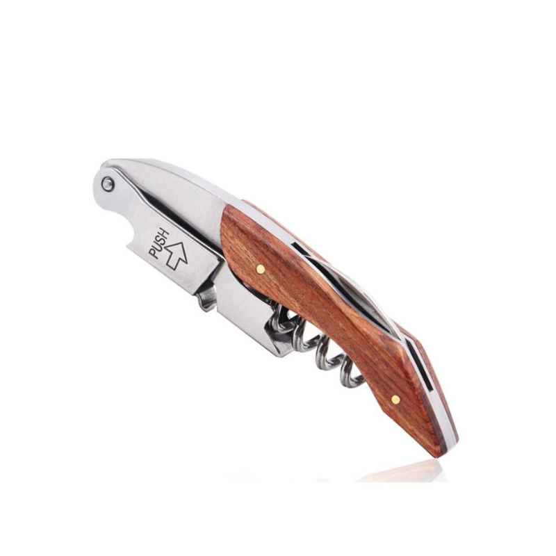 Elegant and practical, this Wine Opener / Corkscrew is crafted with a durable stainless steel body paired with a refined wood finish handle for a premium touch. The ergonomic design ensures a comfortable grip, while the strong corkscrew mechanism allows for smooth and effortless cork removal.