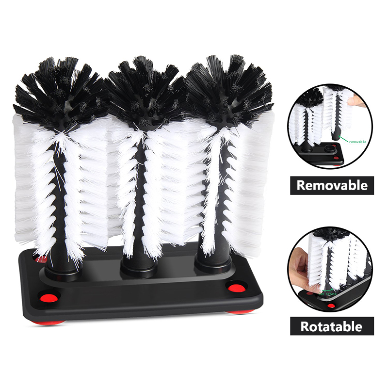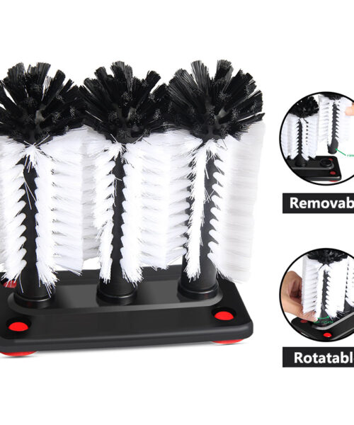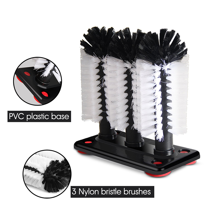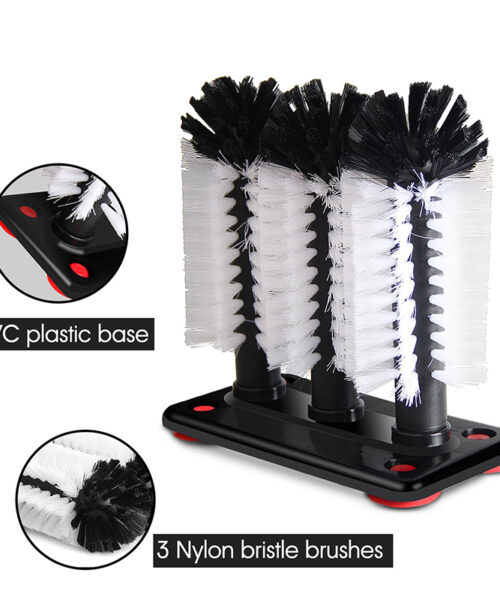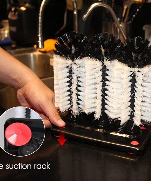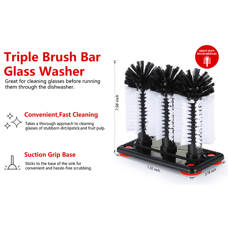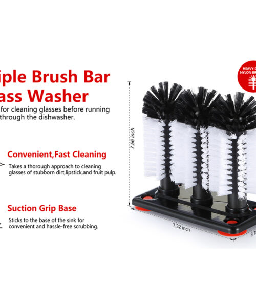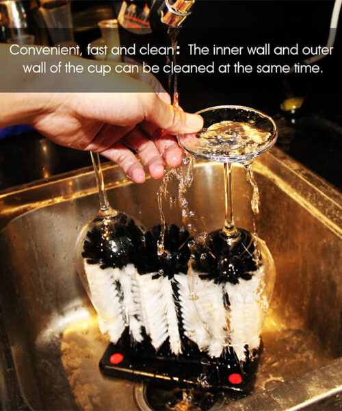 • Durable bristles for thorough cleaning of glasses, bottles, and decanters