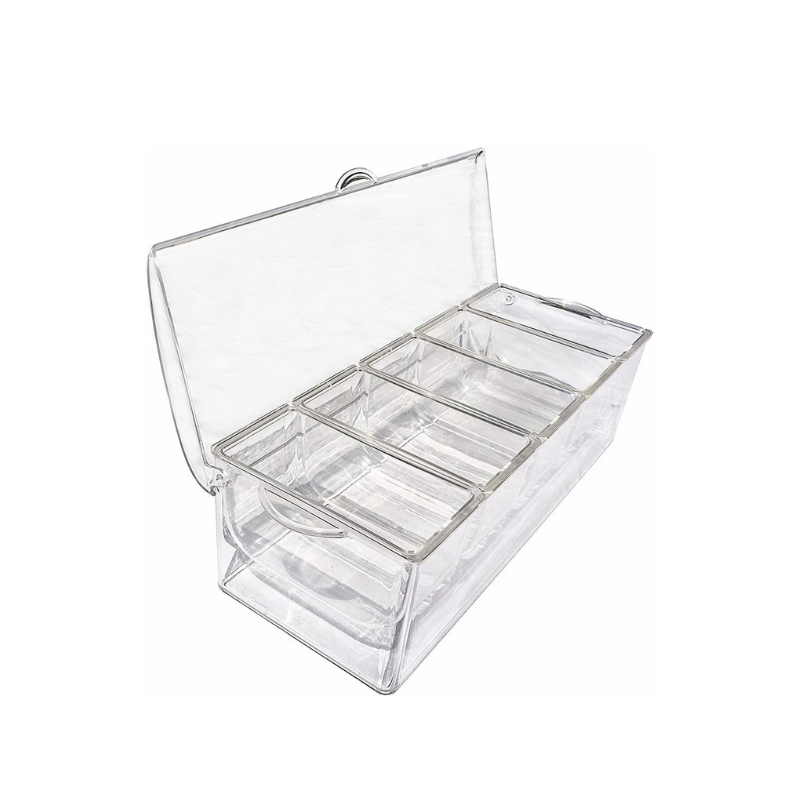 Crafted from high-quality, durable materials, the transparent compartments showcase your ingredients while maintaining hygiene and ease of use. Perfect for bars, restaurants, or home mixology setups, this tray combines functionality with a premium aesthetic.